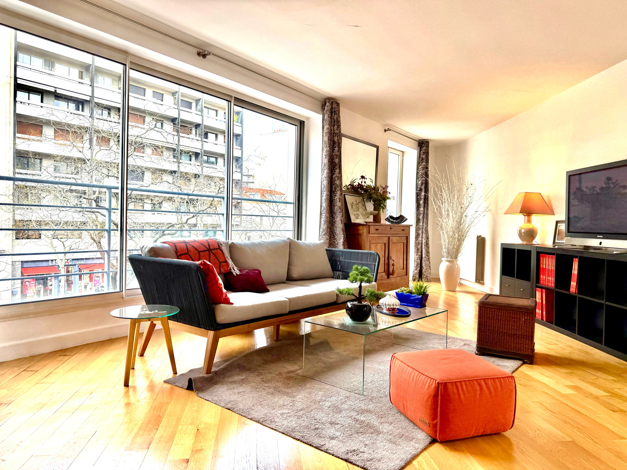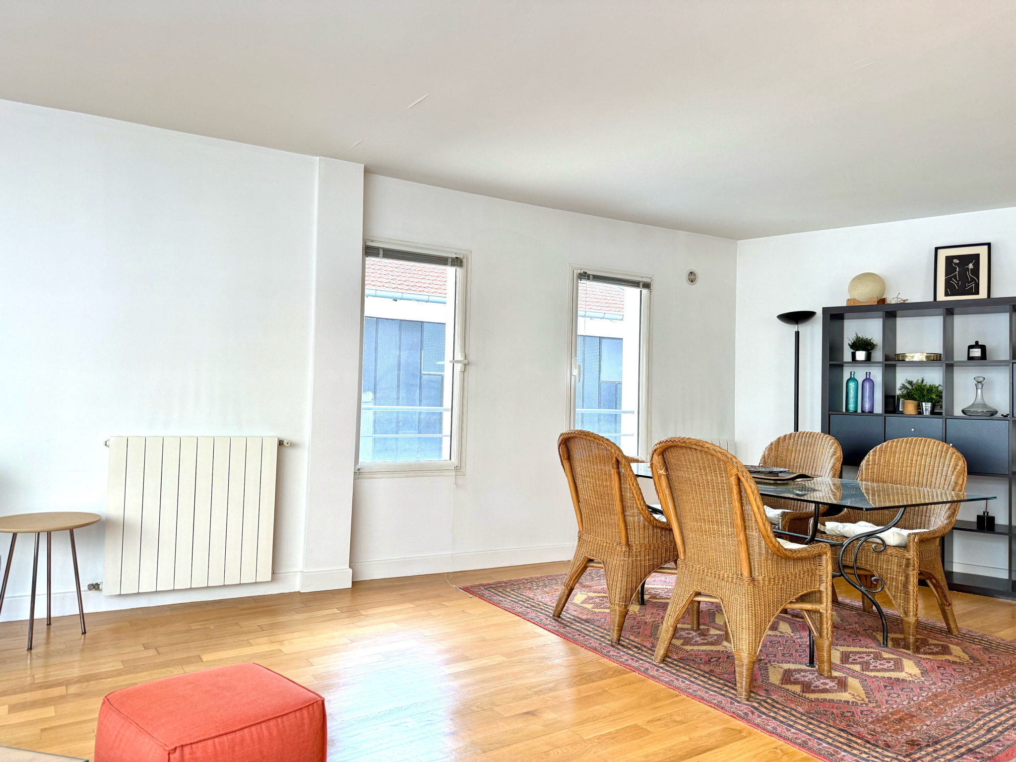 Le double séjour, vaste et baigné de lumière, s'ouvre avec élégance sur l'extérieur grâce à de grandes baies vitrées et de multiples ouvertures, offrant ainsi une superbe clarté tout au long de la journée. La cuisine, ouverte et parfaitement aménagée, s'intègre avec discrétion à l'espace de vie, conjuguant esthétique et fonctionnalité.