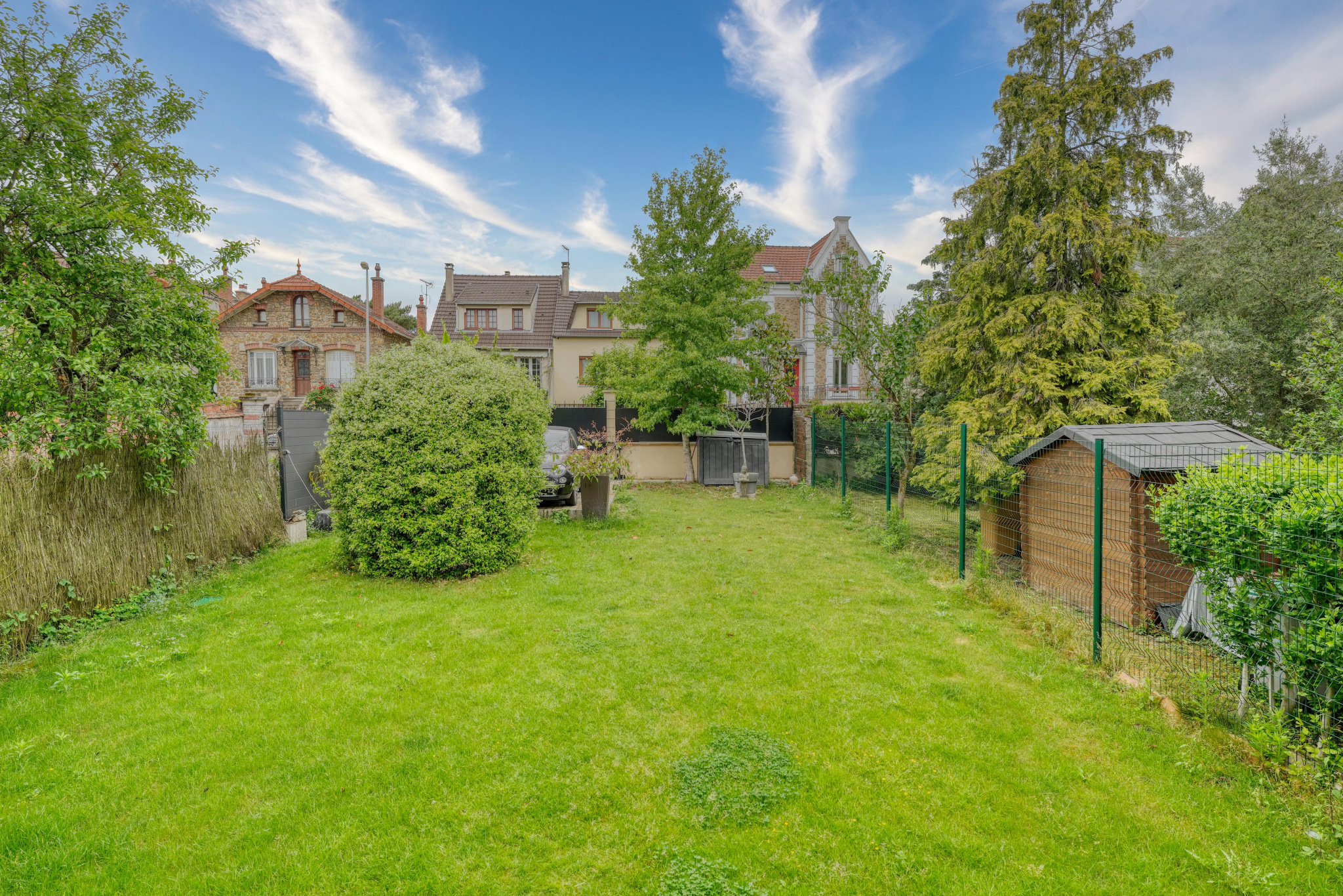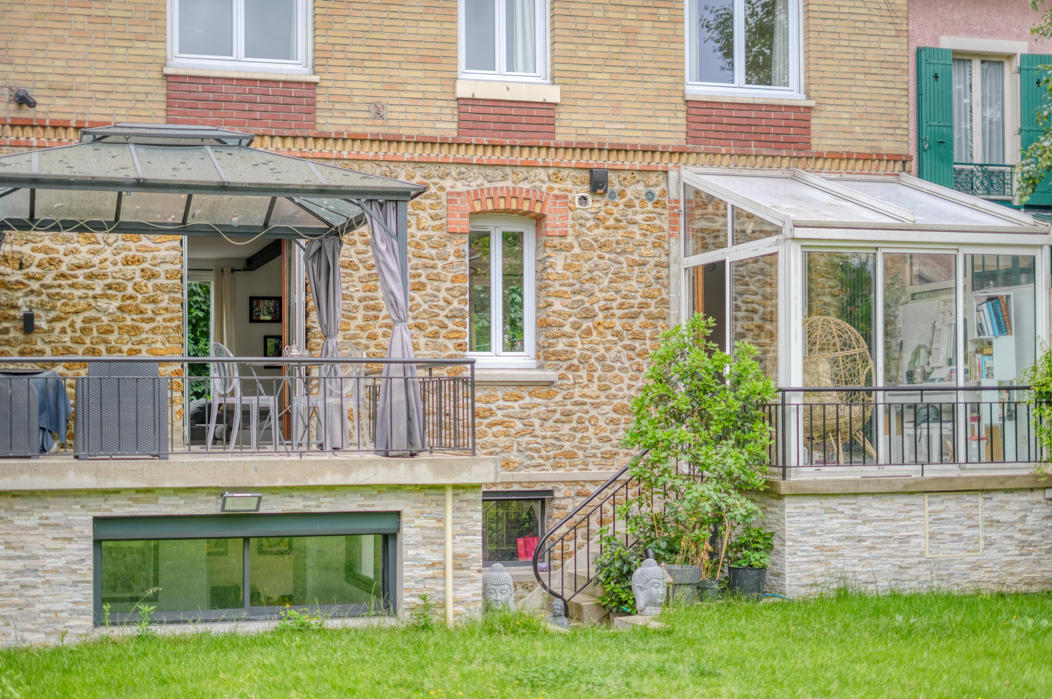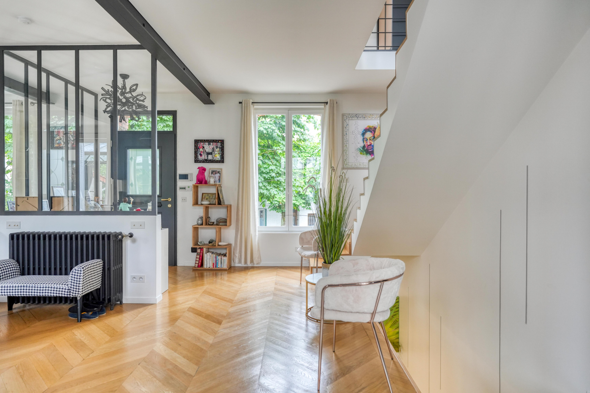 Située en plein centre de Rosny-sous-Bois, à proximité immédiate de la gare RER, cette superbe maison meulière des années 30 a été entièrement rénovée avec goût par un architecte, alliant le charme de l'ancien à des prestations contemporaines de qualité. Édifiée sur quatre niveaux et bénéficiant d'une double exposition sud-ouest, elle offre des volumes généreux et une luminosité exceptionnelle. L'entrée surélevée mène à un vaste espace de vie traversant composé d'un double séjour chaleureux et d'une cuisine sur mesure entièrement équipée avec un grand îlot central. Cette pièce conviviale se prolonge par une véranda baignée de lumière, ouvrant sur une grande terrasse et un magnifique jardin arboré de 250 m2, un véritable havre de paix en coeur de ville. Au premier étage, un plateau de 50 m2 est entièrement dédié à une suite parentale de 52 m2 comprenant une grande chambre avec dressing et îlot central, une élégante salle de bains avec douche à l'italienne, ainsi qu'un WC séparé. Sous les combles, une seconde suite parentale très lumineuse grâce à ses trois Velux disposant d'un dressing, d'une salle d'eau avec douche à l'italienne et de WC privatifs. Le sous-sol aménagé complète parfaitement ce bien rare avec un espace bureau de 18,82 m2 idéal pour le télétravail, et une troisième suite parentale avec salle d'eau, WC et un accès direct au jardin de 54m2 au total. Un garage fermé ainsi qu'un stationnement pour deux véhicules dans le jardin de 250m2 viennent compléter ce bien. Cette maison familiale au style unique offre un cadre de vie privilégié, au calme, tout en étant à proximité immédiate des transports et des commodités. Une opportunité rare sur le secteur.