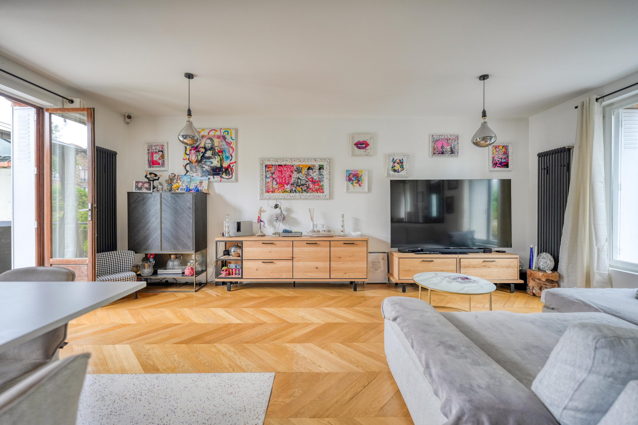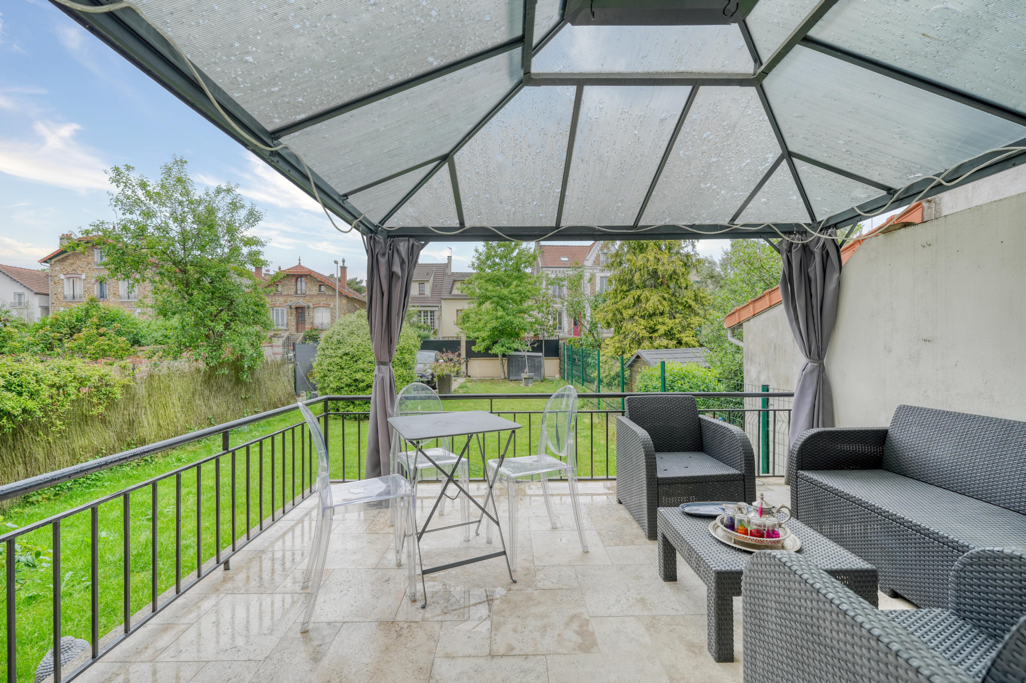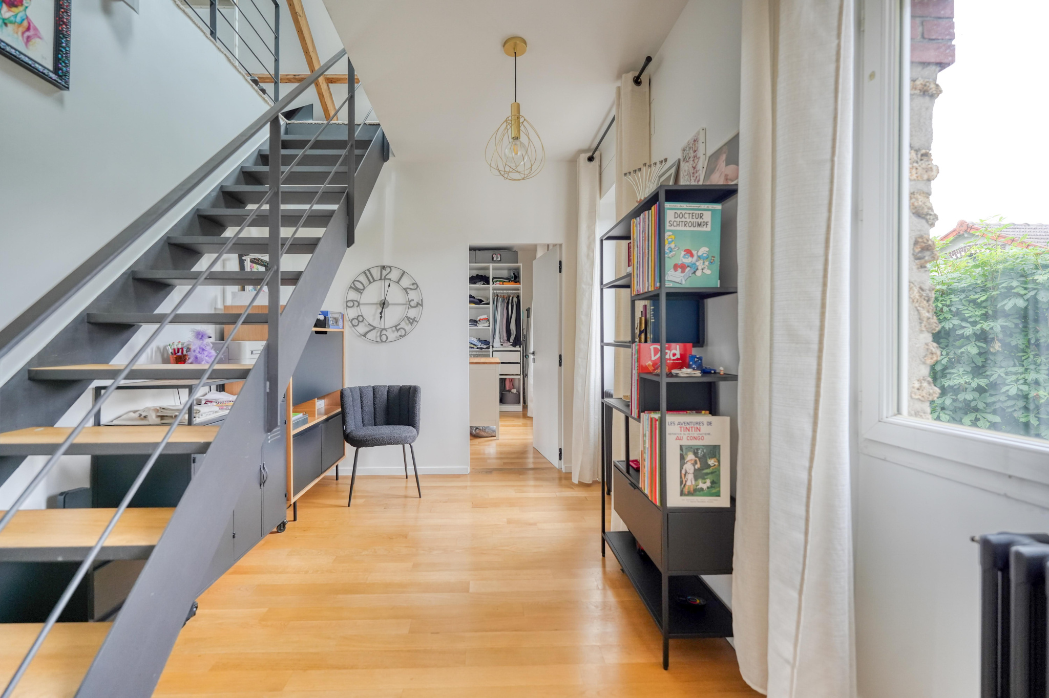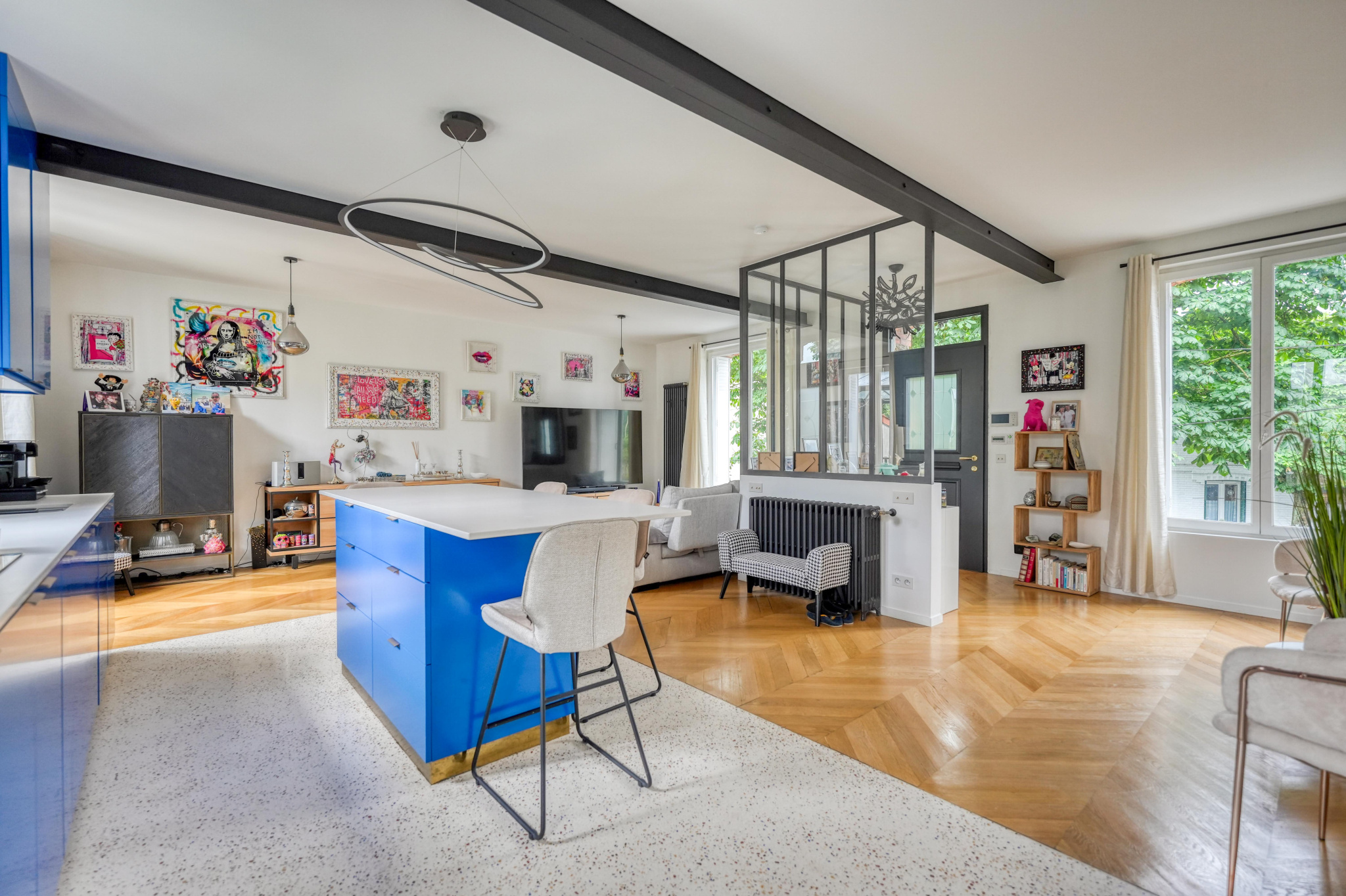 Située en plein centre de Rosny-sous-Bois, à proximité immédiate de la gare RER, cette superbe maison meulière des années 30 a été entièrement rénovée avec goût par un architecte, alliant le charme de l'ancien à des prestations contemporaines de qualité. Édifiée sur quatre niveaux et bénéficiant d'une double exposition sud-ouest, elle offre des volumes généreux et une luminosité exceptionnelle. L'entrée surélevée mène à un vaste espace de vie traversant composé d'un double séjour chaleureux et d'une cuisine sur mesure entièrement équipée avec un grand îlot central. Cette pièce conviviale se prolonge par une véranda baignée de lumière, ouvrant sur une grande terrasse et un magnifique jardin arboré de 250 m2, un véritable havre de paix en coeur de ville. Au premier étage, un plateau de 50 m2 est entièrement dédié à une suite parentale de 52 m2 comprenant une grande chambre avec dressing et îlot central, une élégante salle de bains avec douche à l'italienne, ainsi qu'un WC séparé. Sous les combles, une seconde suite parentale très lumineuse grâce à ses trois Velux disposant d'un dressing, d'une salle d'eau avec douche à l'italienne et de WC privatifs. Le sous-sol aménagé complète parfaitement ce bien rare avec un espace bureau de 18,82 m2 idéal pour le télétravail, et une troisième suite parentale avec salle d'eau, WC et un accès direct au jardin de 54m2 au total. Un garage fermé ainsi qu'un stationnement pour deux véhicules dans le jardin de 250m2 viennent compléter ce bien. Cette maison familiale au style unique offre un cadre de vie privilégié, au calme, tout en étant à proximité immédiate des transports et des commodités. Une opportunité rare sur le secteur.