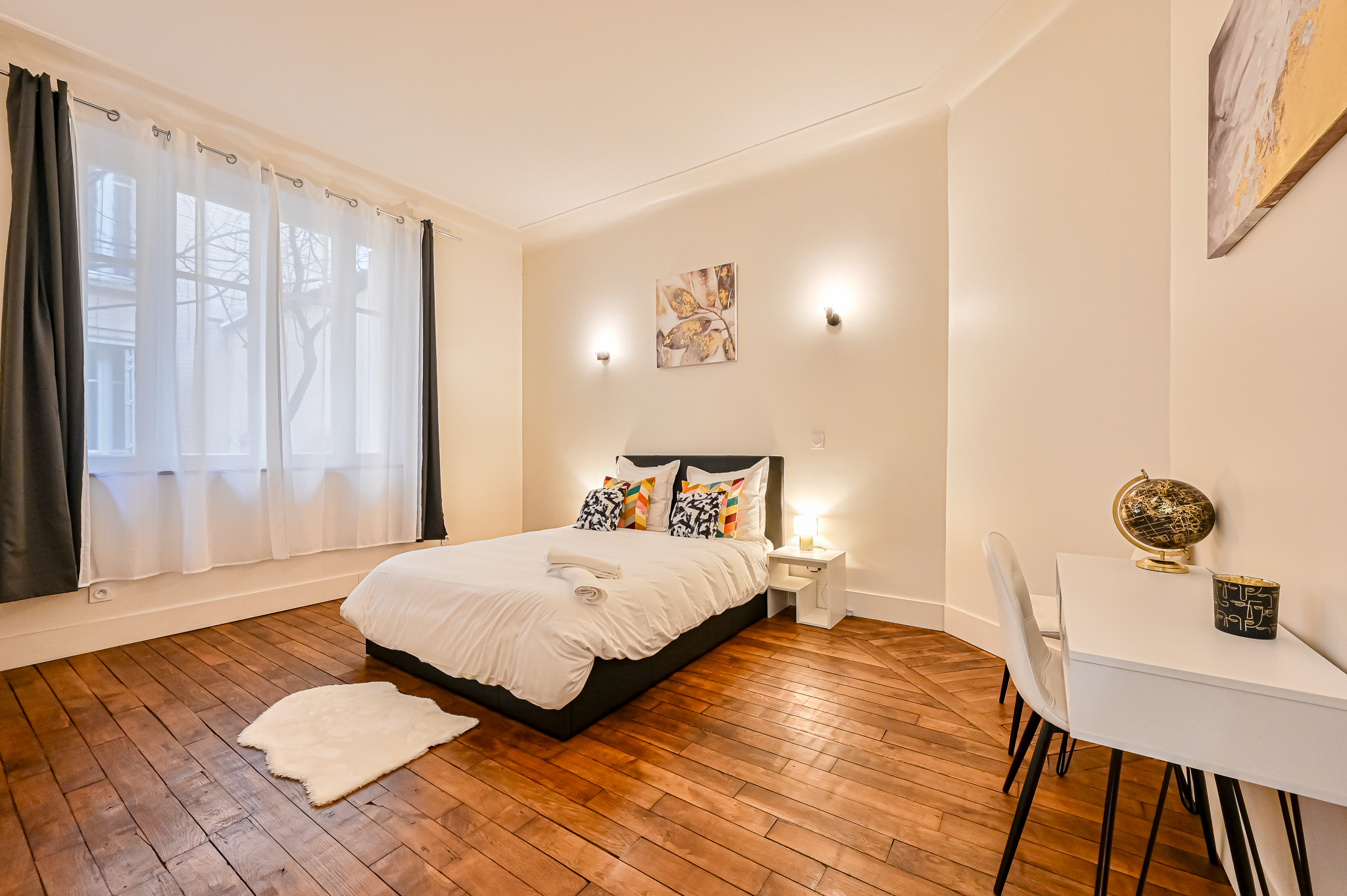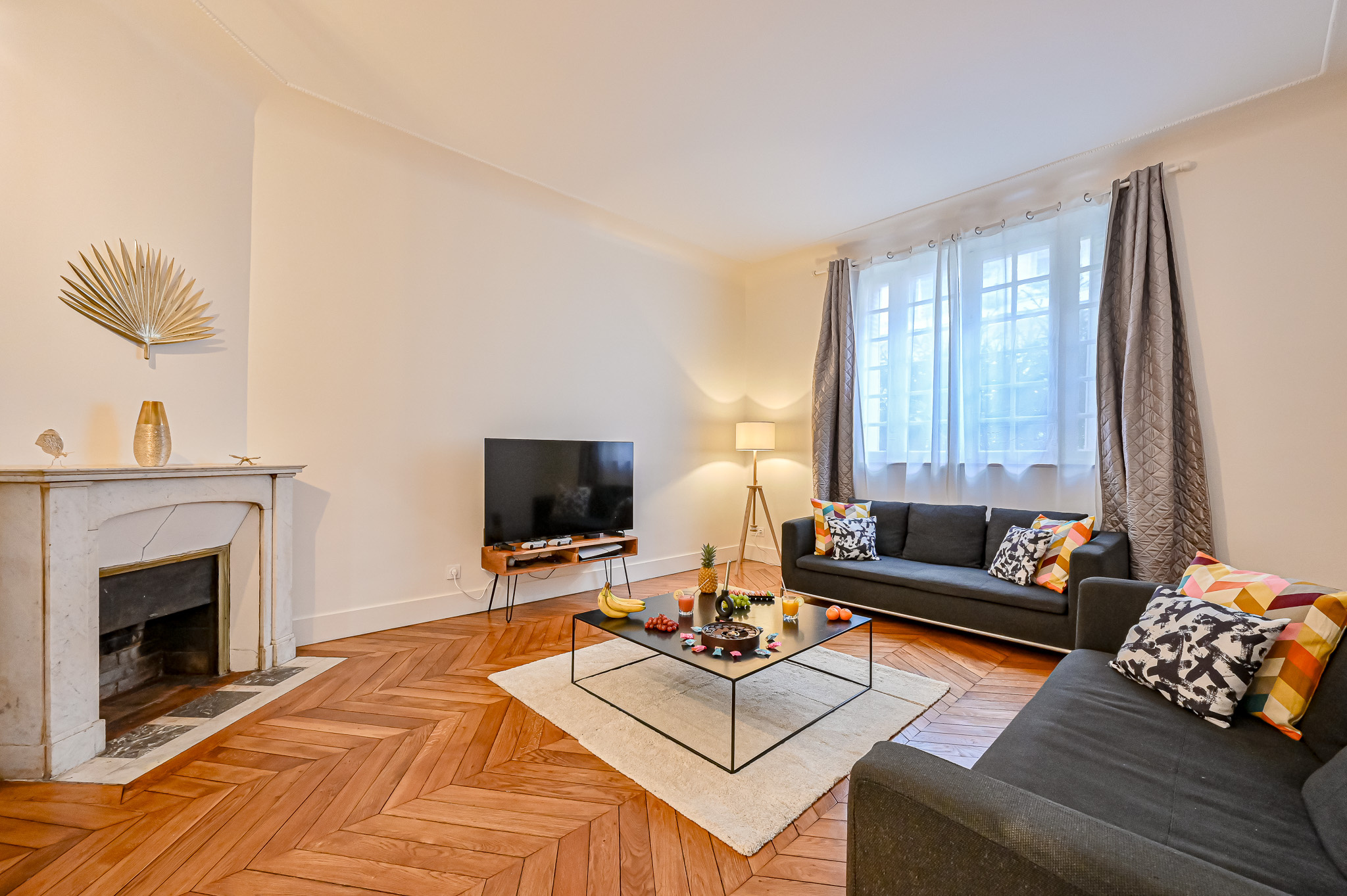 Triomphe Immobilier a le plaisir de vous proposer cet élégant appartement meublé de 128 m2 offre un cadre de vie rare, alliant le charme de l'ancien à une rénovation contemporaine de qualité. Niché en rez-de-chaussée sans vis à vis d'un immeuble sécurisé des années 1920 avec gardien et ascenseur, ce bien se distingue par ses volumes généreux, sa hauteur sous plafond et ses prestations haut de gamme. L'appartement se compose d'une vaste entrée donnant sur une pièce de vie baignée agréable avec cheminée, autour un double séjour offrant une cuisine ouverte entièrement équipée. Le coin nuit et séparée des pièce de vie vous propose trois superbes suites parentales, chacune avec salle d'eau offrent confort et intimité. L'une d'entre elles bénéficie d'une salle de bains complète avec douche et WC, chaque pièce d'eau est équipée d'un sèche-serviettes.. Les éléments d'origine, parquet en point de Hongrie, belle hauteur sous plafond, ont été soigneusement conservés et sublimés par une décoration contemporaine raffinée et un mobilier de standing. Le chauffage est collectif, tandis que l'eau chaude est individuelle. Exposé sur une cour intérieure arborée, ce bien bénéficie d'un calme absolu, tout en restant au coeur de la vie parisienne. Une adresse confidentielle et prestigieuse, idéale pour une résidence principale ou un pied-à-terre de standing à 400m2 métro 9 arrêt Exelmans. Contactez-nous rapidement pour le visiter.