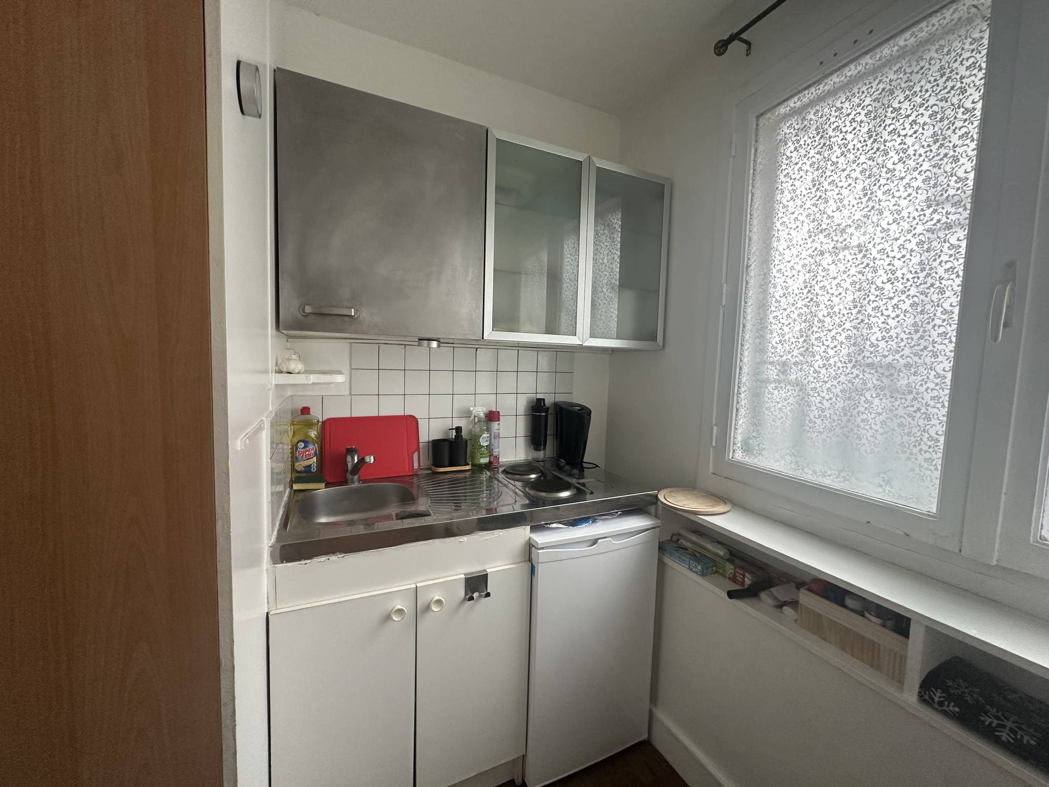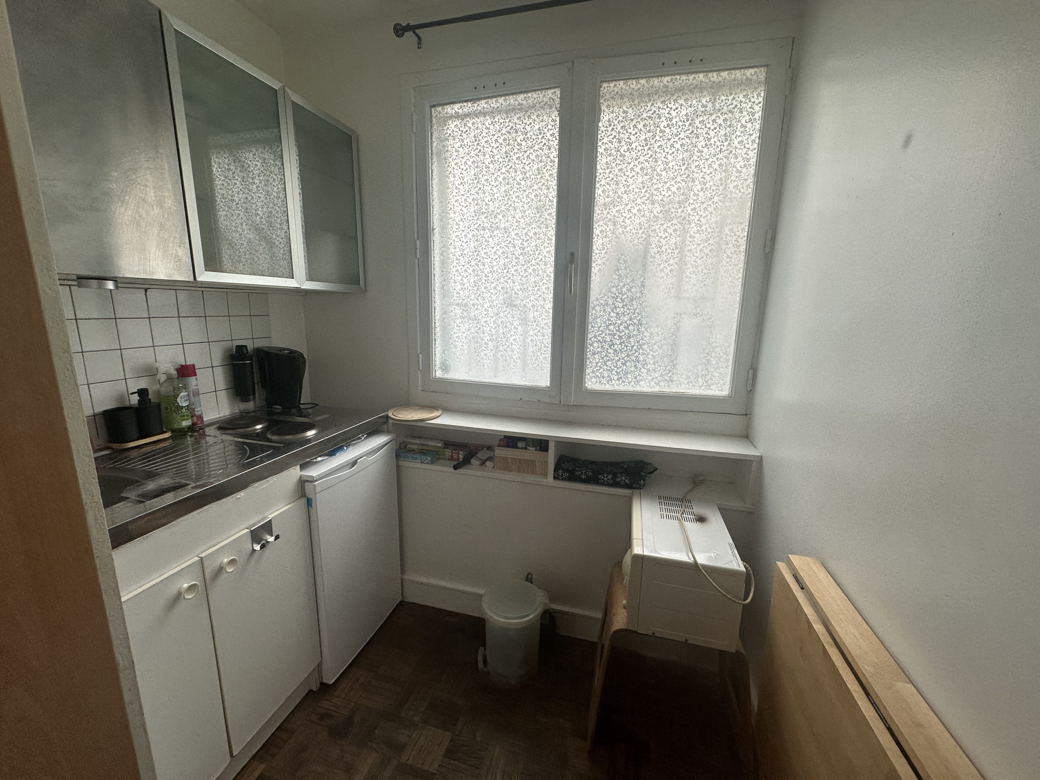 Ce bien se compose d’une pièce principale avec un espace cuisine entièrement aménagé et équipé. Une salle d’eau, ainsi que des toilettes situés sur le palier, viennent compléter l’ensemble.