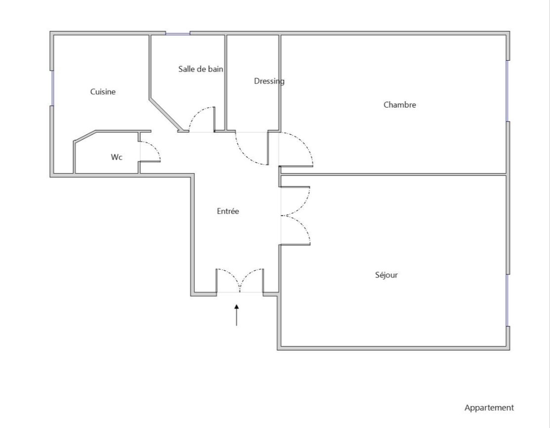 Il se compose d’une grande entrée, d’un séjour lumineux de 13,5 m2, d’une chambre spacieuse de 13,5 m2, d’une cuisine séparée et équipée (plaques vitrocéramiques, four), d’une salle de bain avec baignoire, d’un WC indépendant, d’une buanderie avec rangements ainsi que d’une cave en sous-sol.