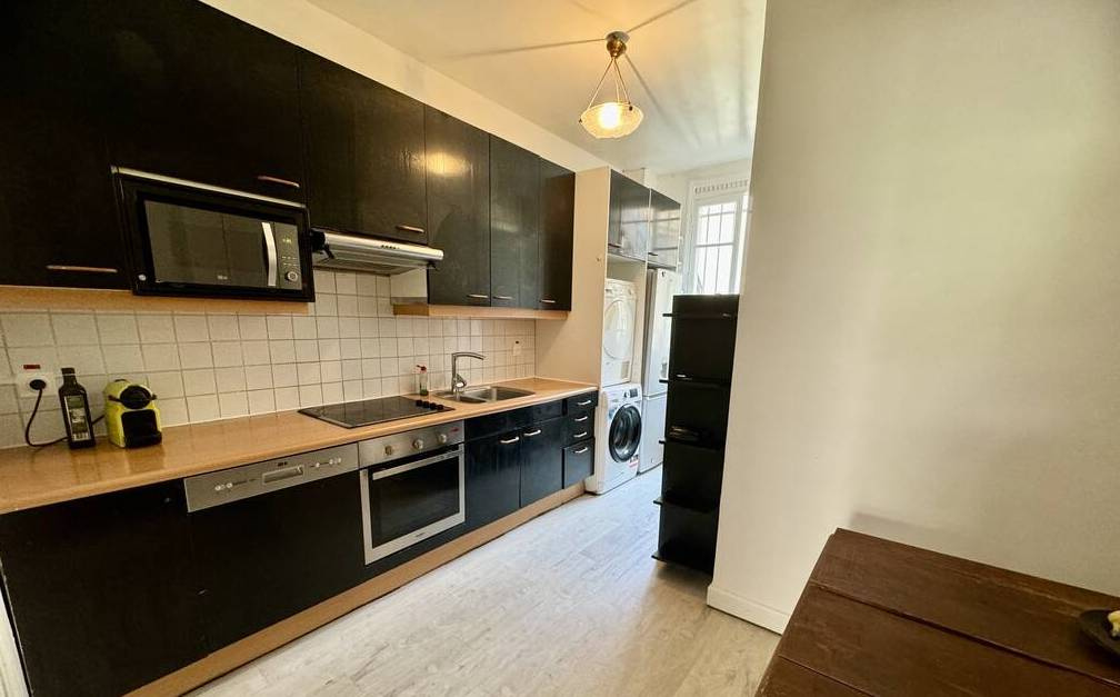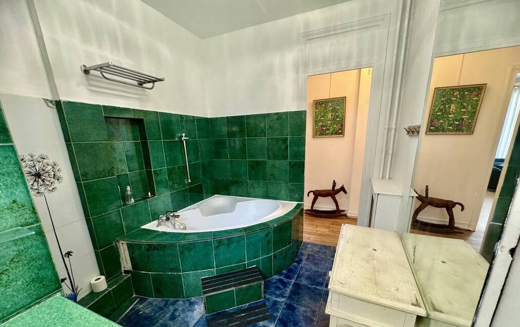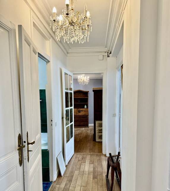 Il se compose d’un vaste double séjour lumineux, avec espace salon et salle à manger, parquet en chêne, moulures d’époque et belles hauteurs sous plafond.La cuisine indépendante, entièrement équipée (plaques, four, lave-vaisselle, micro-ondes, lave-linge), offre confort et fonctionnalité au quotidien.