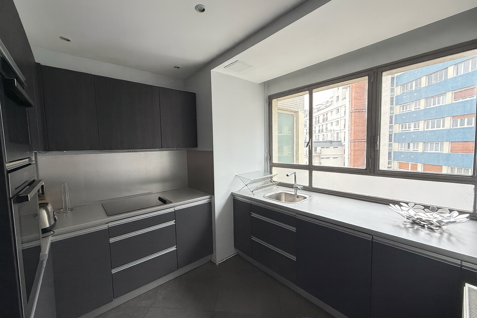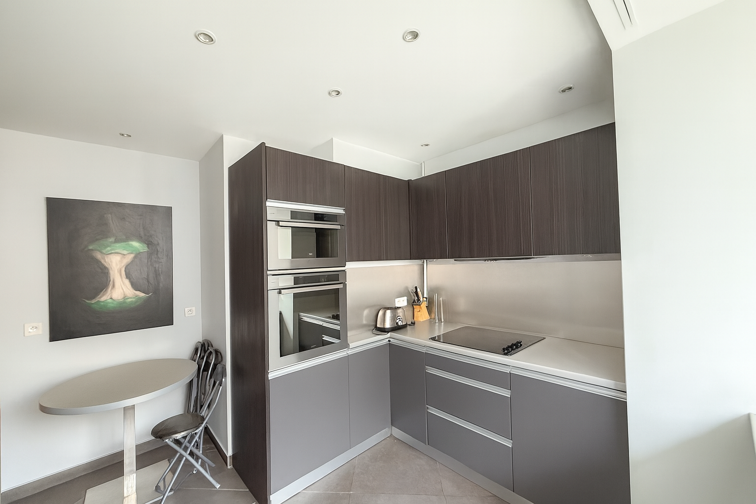 La cuisine indépendantes, moderne et entièrement équipée (four, plaques, lave-vaisselle, réfrigérateur, nombreux rangements),allie design et practicité.