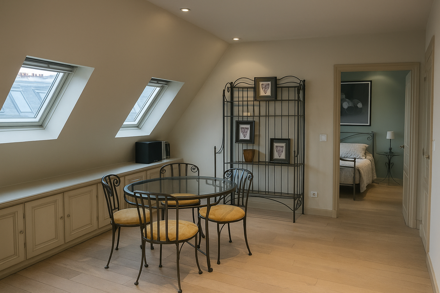 Triomphe Immobilier vous présente ce superbe appartement meublé, niché Rue Lauriston, au cœur d’un quartier prisé du 16ème arrondissement. Situé au dernier étage d’une élégante copropriété, il bénéficie d’une vue imprenable sur la Tour Eiffel depuis chaque pièce.