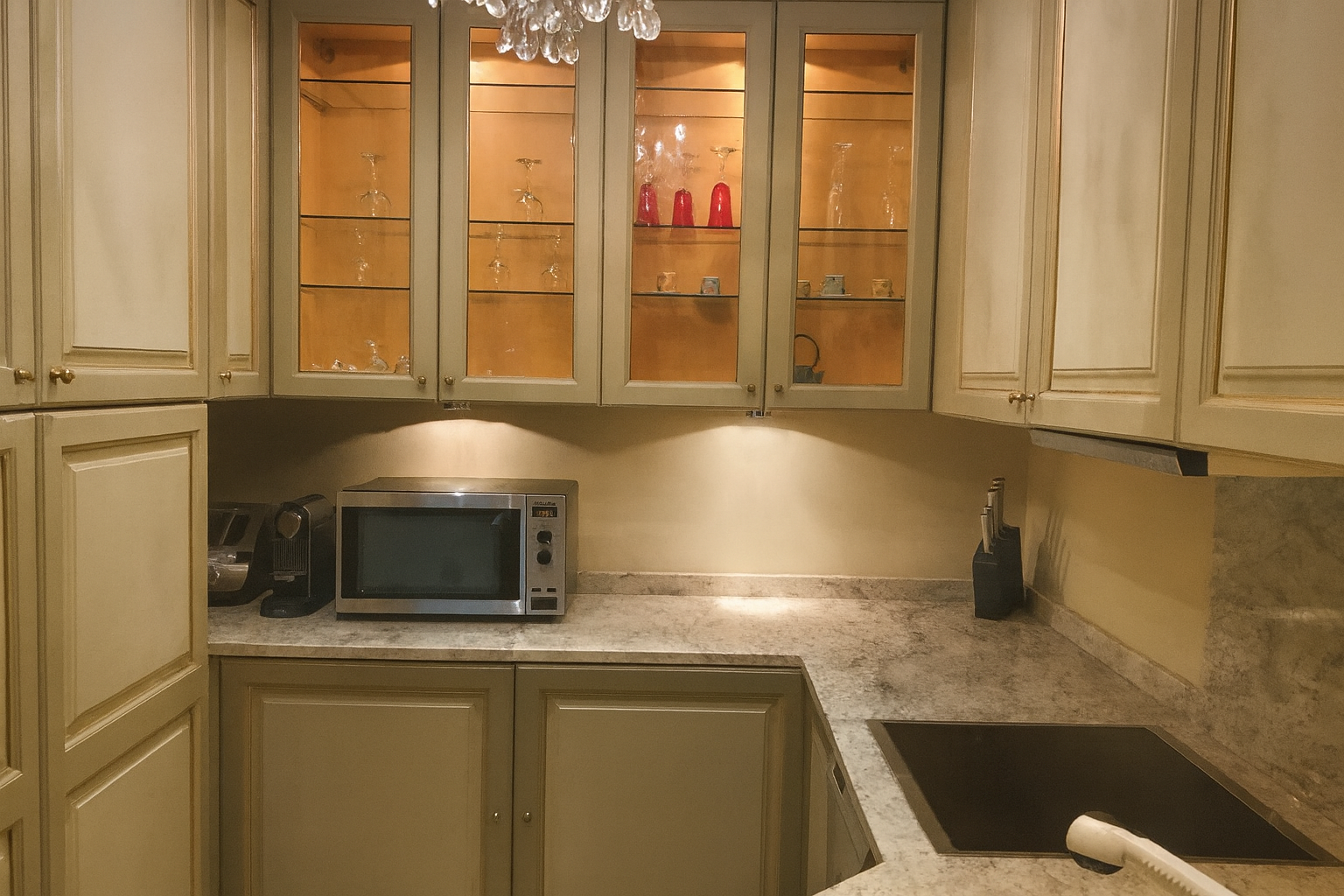 Il se compose d'une entrée avec WC indépendant et lave-mains, d'un séjour lumineux avec cuisine ouverte entièrement équipée (four, hotte, plaque de cuisson, micro-ondes, grand réfrigérateur-congélateur, lave linge, sèche-linge), d'une chambre séparée et d'une salle d'eau moderne.