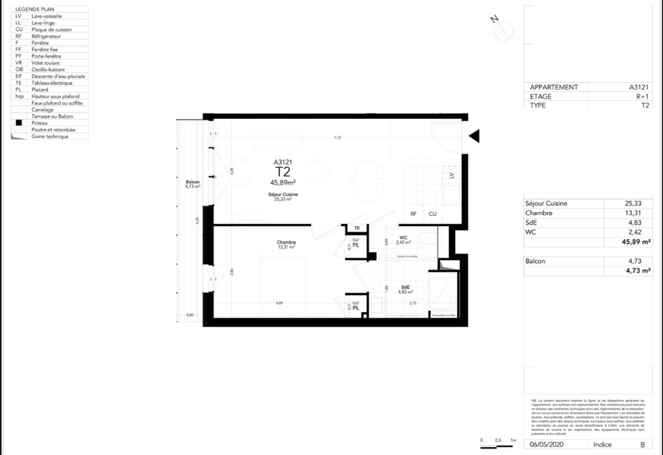 | Surface habitable | 45.89 m² |