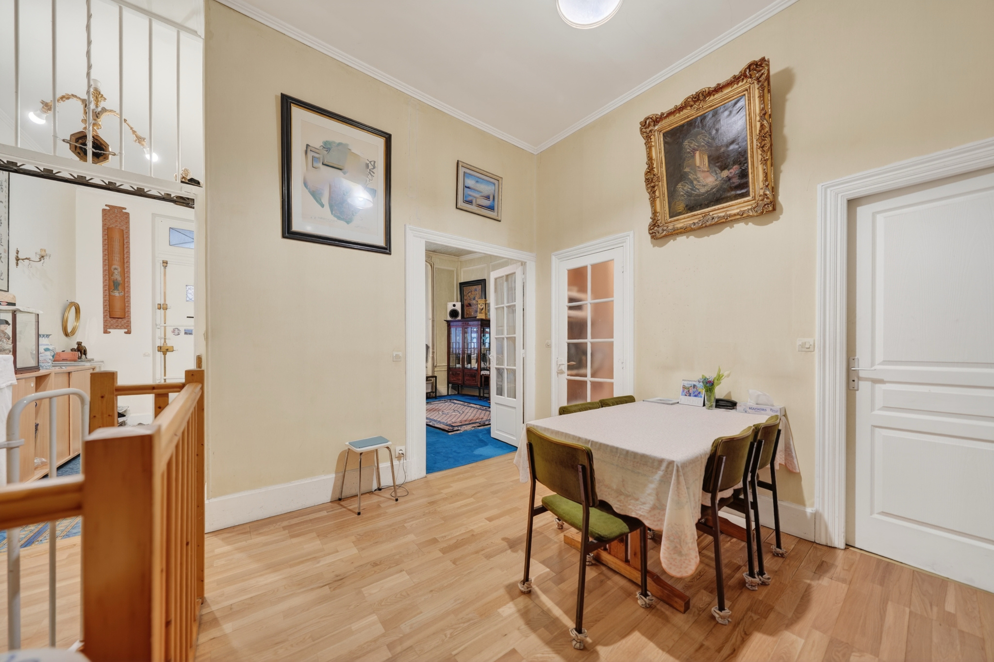 Un atout rare complète ce bien : deux entrées distinctes, l’une sur rue grâce à une entrée indépendante, l’autre sur cour, permettant de multiples configurations d’usage, y compris une activité professionnelle ou une division intelligente.