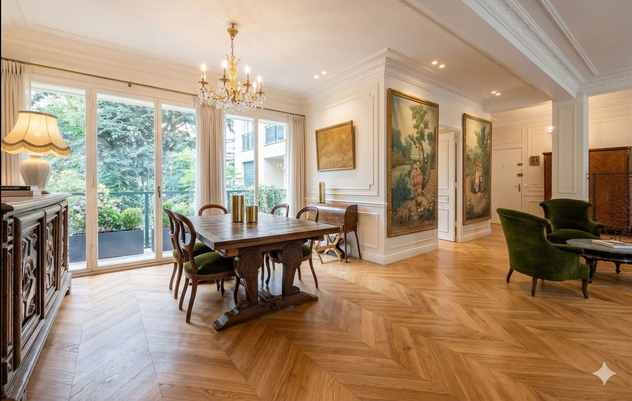 Découvrez ce superbe appartement traversant de 96 m2 en rez-de-jardin, situé dans une résidence de standing sécurisée, récemment ravalée, à quelques pas de l’Arc de Triomphe et des Champs-Élysées. Véritable havre de paix, il ouvre directement sur un parc arboré, au calme absolu et sans vis-à-vis, offrant un art de vivre unique au cœur de Paris.